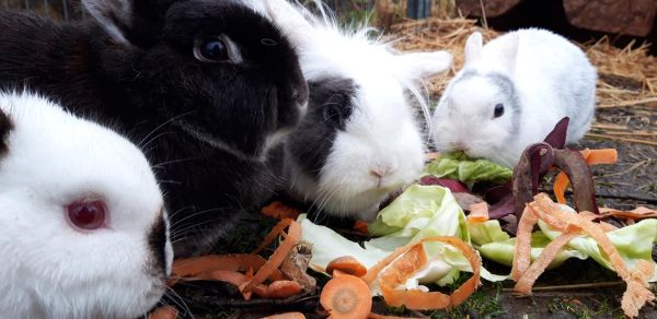 Die Kaninchen bei uns haben ein großzügiges Außengehege mit mehreren Futterplätzen, einer zentralen Wasserstelle, mehreren Versteckmöglichkeiten, einem isolierten Winterhäuschen und ihren selbstgebuddelten Gängen und Höhlen.