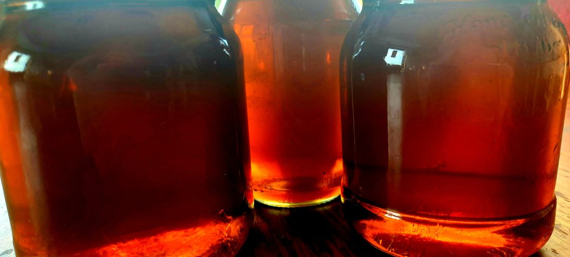 200g frisch gesammelte Blüten in einem Topf mit 1L Wasser mehrere Stunden ziehen lassen. Dann alles kurz aufkochen und über Nacht ziehen lassen. Am nächsten Tag die Blüten ab sieben. 1kg Zucker und die geriebene Schale einer halben Zitrone hinzufügen und köcheln lassen. Das Gemisch muss so lange köcheln bis die Konsistenz honigartig zäh wird. Den Löwenzahnblütenhonig in gut ausgewaschene und trockene Gläser füllen, schnell verschließen und abkühlen lassen.