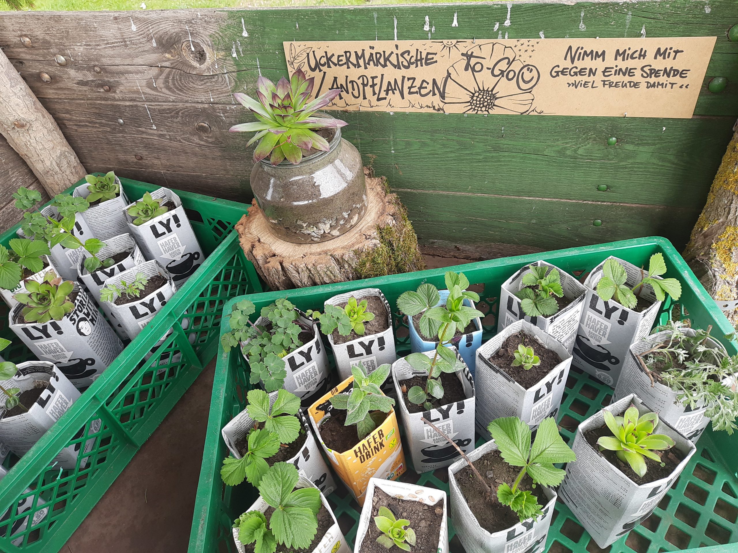 Schönes aus der Uckermark für den eigenen Garten oder Balkon. Einfach zum mitnehmen an unserem Stand. Erdbeeren und Co in gebrauchten Getränkekartons.